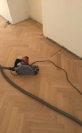 Nieuwe eiken QFQ visgraat met band en bies in Scheveningen